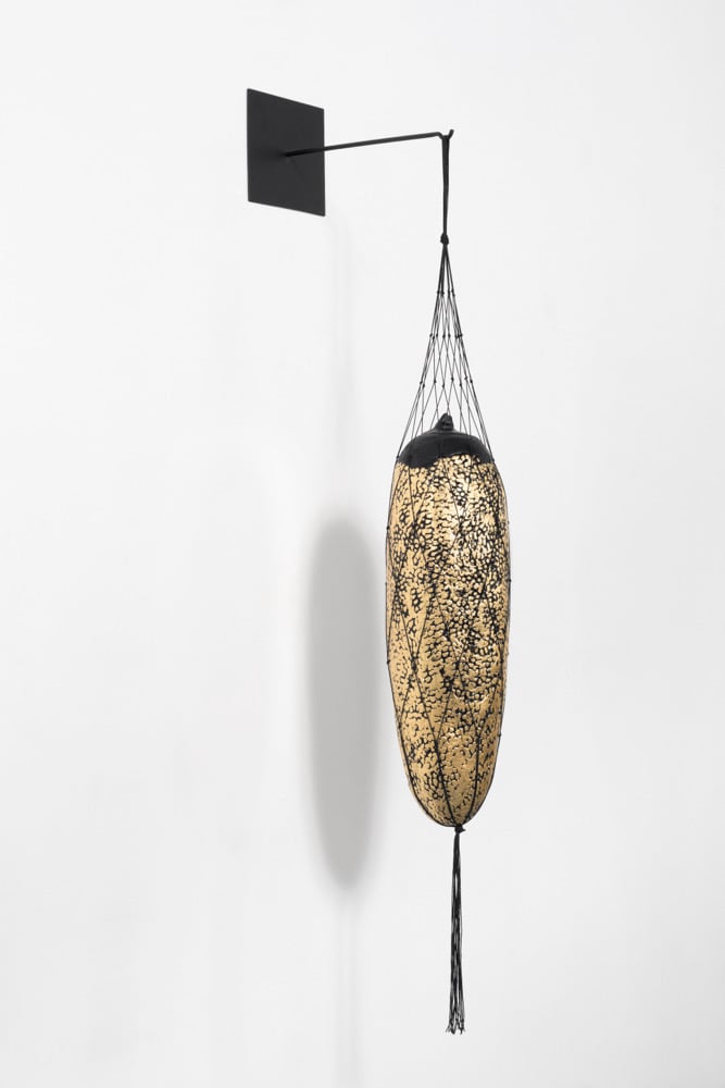 Valerie Piraino Objet Trouvé I Polystyrene, epoxy clay, paint, gold leaf, twine 45 1/2 x 6 1/4 x 6 inches 2016