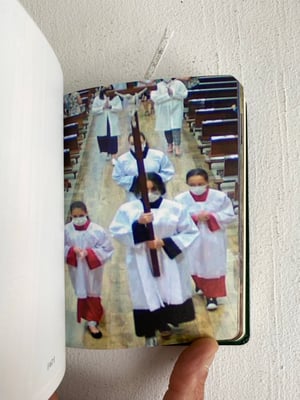 For more than two years, Antoine Martin explored the contents of the main online camera directory (insecam.com). He focused in particular on virtual masses, a phenomenon that saw exponential growth during the pandemic. In an era when meeting up online and the digitization of information are rising trends, Martin’s “Virtual Mass” series showcases the ubiquity of remote surveillance and reveals the role played by new technologies in the liturgical space. The screenshots collected in a publication that evokes the aesthetics of Mass books ultimately prompt the viewer to consider whether the digitization of the divine presence is conceivable.
